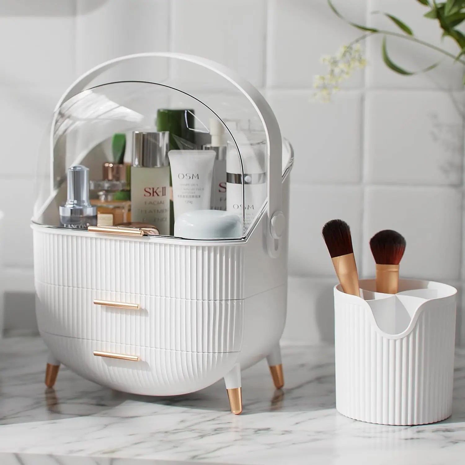 הכירי את סט ארגוניות האיפור המושלם לשמירה על סדר והארגון בחדר שלך! עם תאים ומגירות שמיועדים לכל מוצרי האיפור שלך, תוכל לשמור על הכל מסודר, נגיש וקל למציאה. כל מה שאת צריכה כדי לארגן את שגרת האיפור והטיפוח בצורה מדהימה.